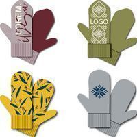 Варежки с вывязанным логотипом и индивидуальным рисунком в фирменной цветовой гамме.