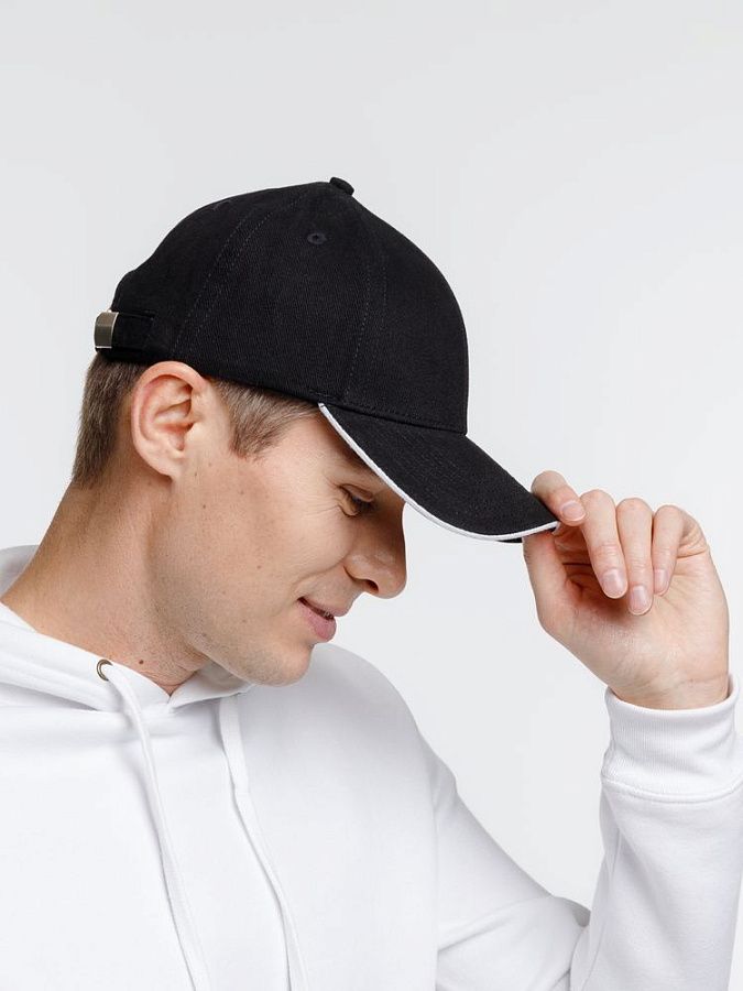 - Плотный козырек-сэндвич с контрастной вставкой