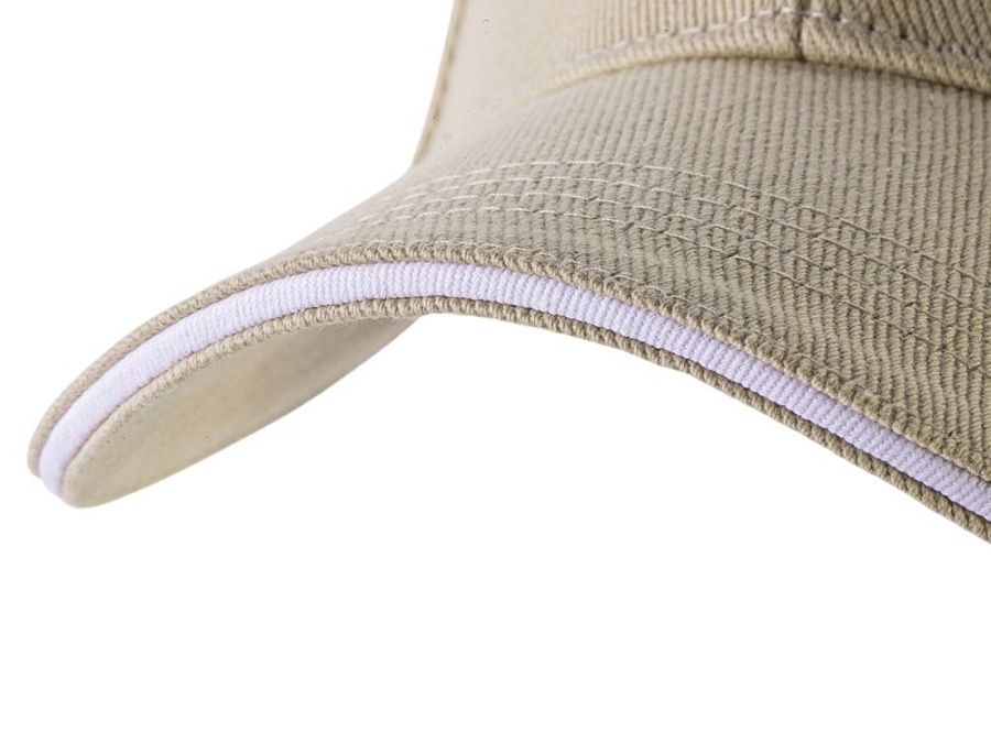 Стильный контрастный кант по козырьку и заднему хлястику добавляет изделию выразительности и делает бейсболку заметным элементом образа.