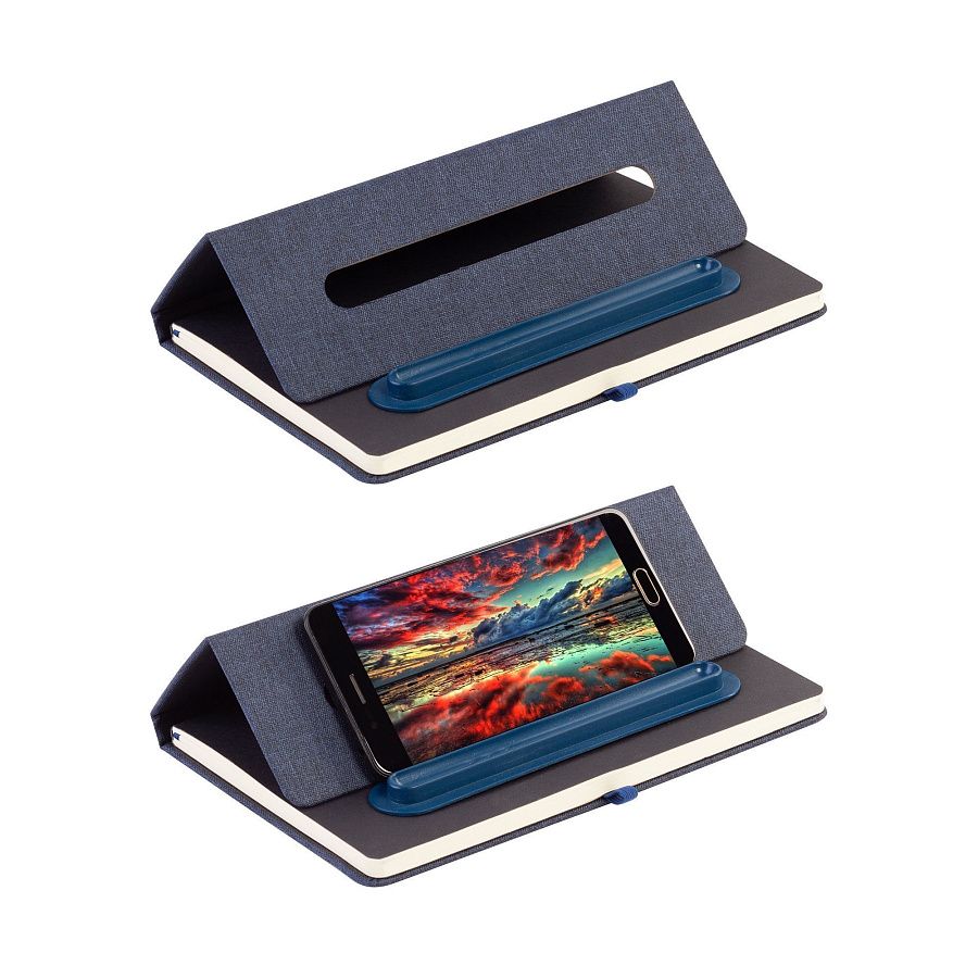- Блокнот формата А5 с резинкой-фиксатором и встроенным в обложку магнитным держателем для ручки. Внутренний блок состоит из 160 страниц в линейку бумаги плотностью 70 г/м2. Материал обложки изготовлен из переработанного (RPET) пластика. Магниты прочно и надёжно закрепляют металлическую ручку на обложке. Бонус – обложка трансформируется в удобную подставку для смартфона/планшета/ноутбука;