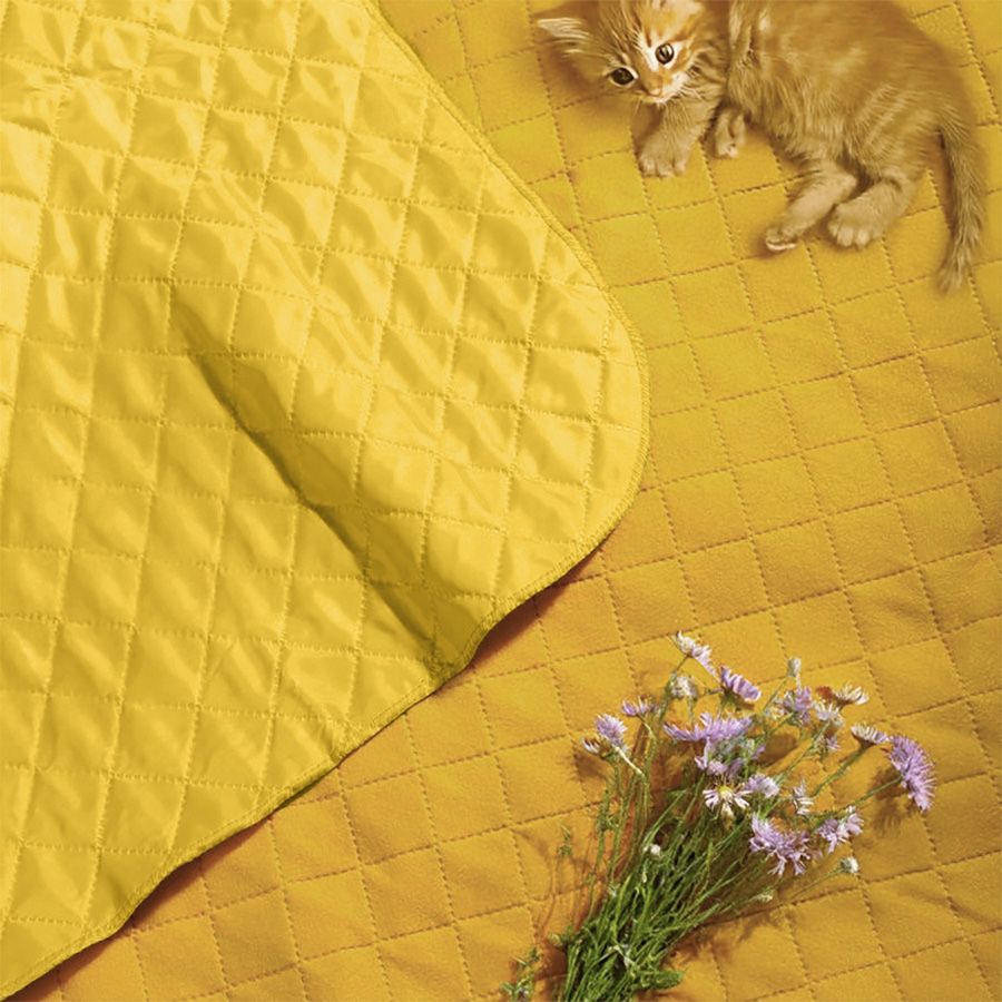 Двухсторонний плед с водоотталкивающим покрытием с одной стороны и мягким флисом с другой. Складывается в сумку на плечо и фиксируется с помощью молнии.Есть наружный карман.