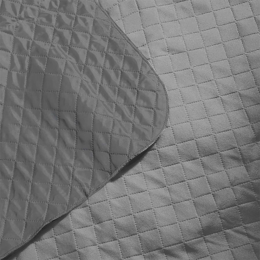 Двухсторонний плед с водоотталкивающим покрытием с одной стороны и мягким флисом с другой. Складывается в сумку на плечо и фиксируется с помощью молнии.Есть наружный карман.