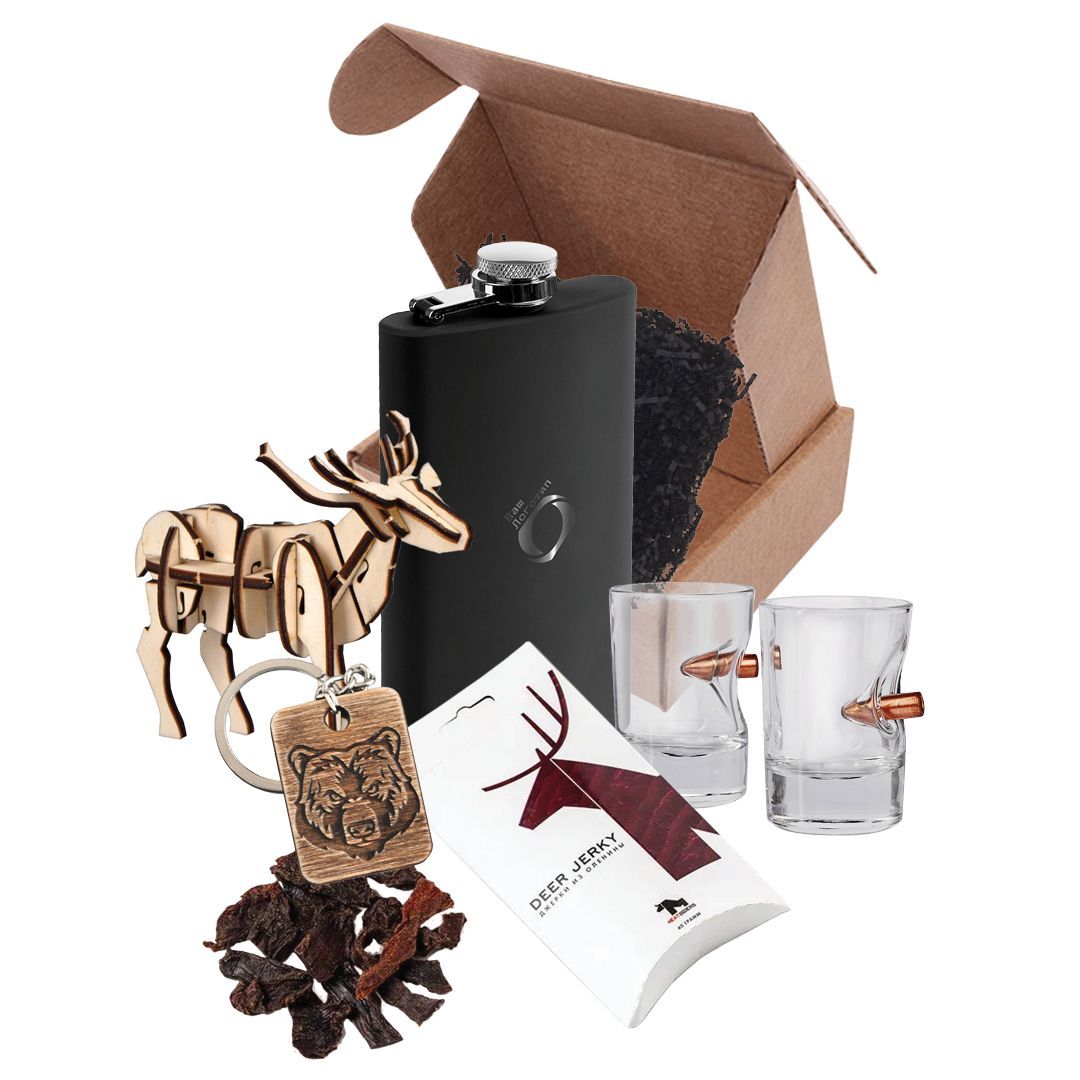 Подарочный набор "Вечер в тайге": фляжка, стопки, джерки, брелок, олень Потап