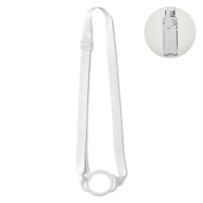 Ланьярд с силиконовым держателем для бутылки (диаметр 6 см) и регулируемой застежкой. Ширина ланьярда 20 мм.