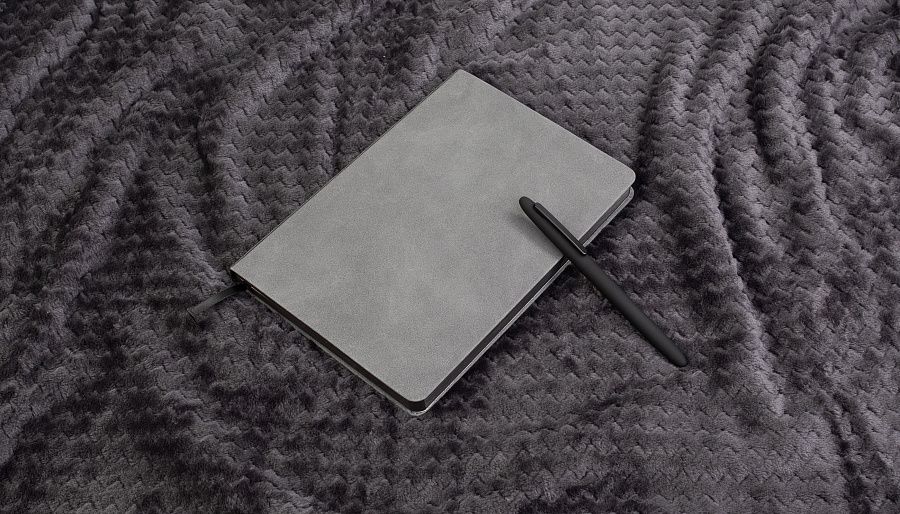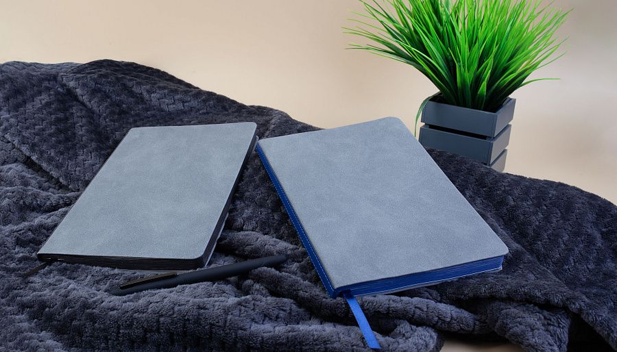 Основной материал напоминает велюр, с характерной тактильностью и гибкостью, такой ежедневник не хочется выпускать из рук.