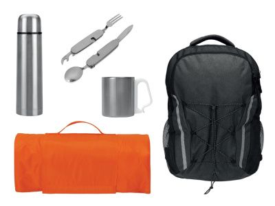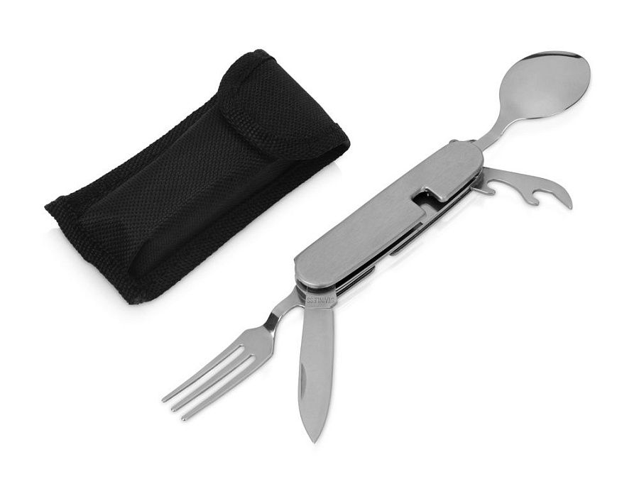 В нем есть все, что необходимо - ложка, вилка, ножик, открывалка бутылок и жестяных банок. Также имеется удобное кольцо для подвешивания. При необходимости набор разделяется на две части.