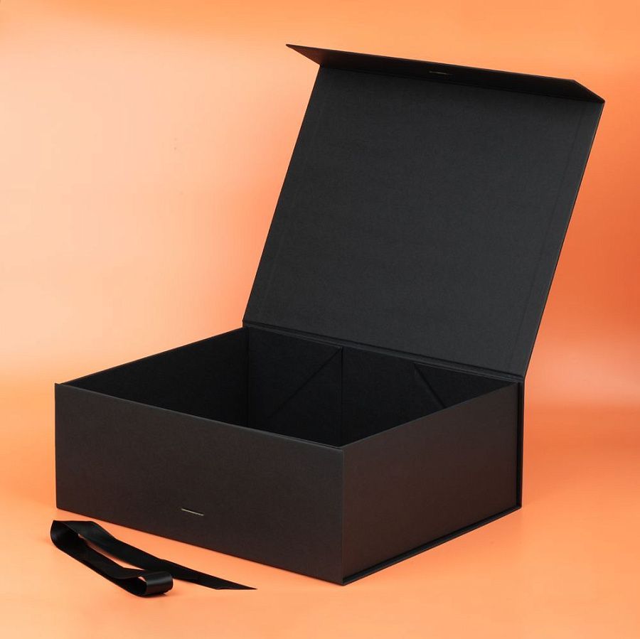 Коробка из переплетного картона, кашированного тонированной в массе крафтовой бумагой. Крышка на двух магнитах дополнительно фиксируется лентой.Толщина картона 2 мм.