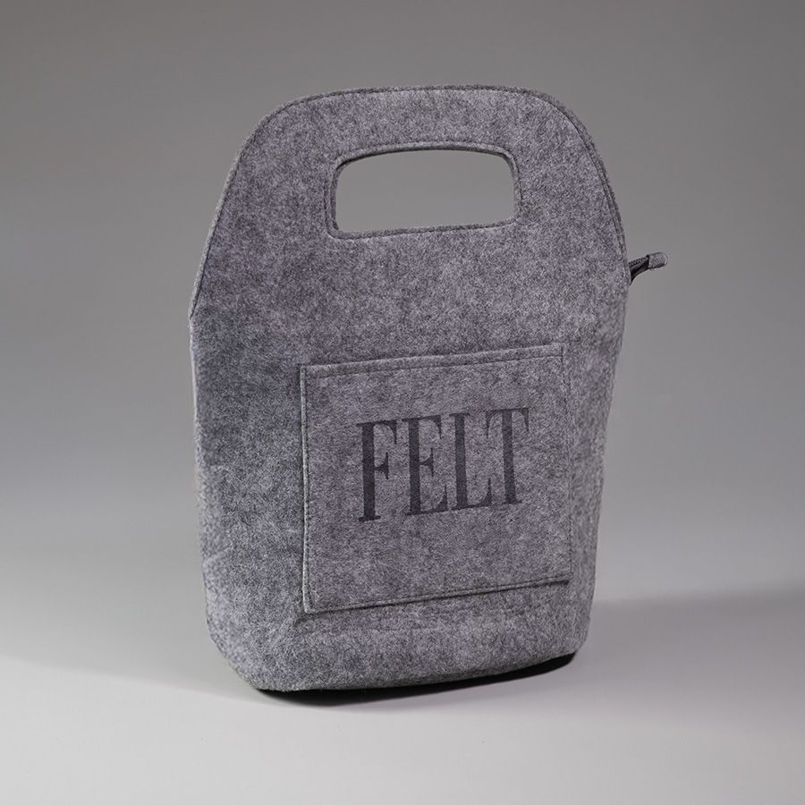 Сумка-холодильник из материала, имитирующего натуральный войлок.Одно основное отделение с подкладкой из PEVA 3 мм.Один наружный карман из основного материала. Объём 3 литра.