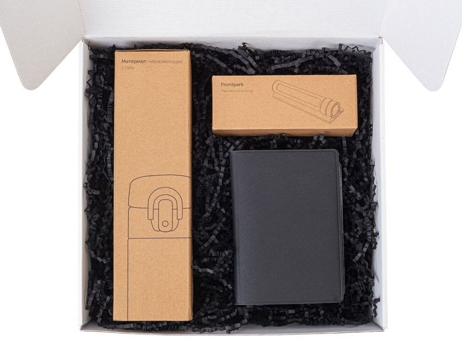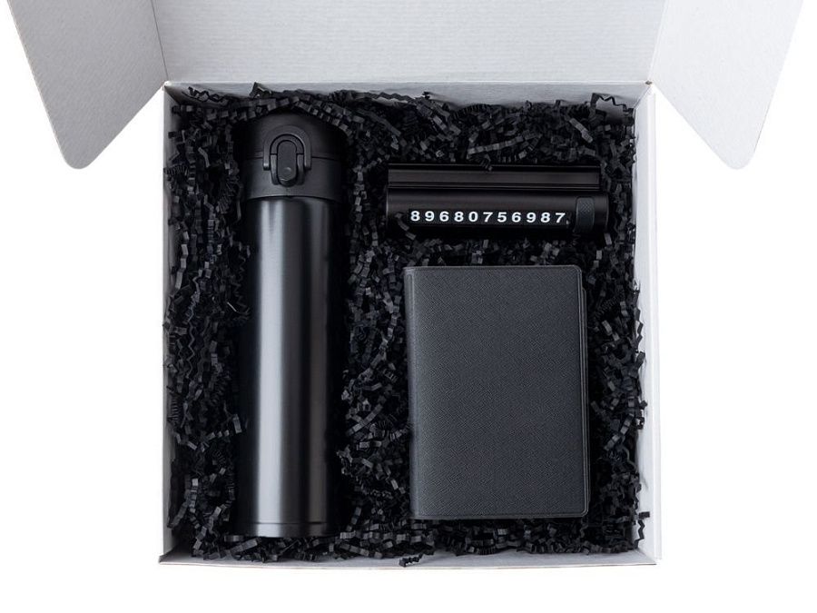 - Подарочные наборы с термокружкой черного цвета