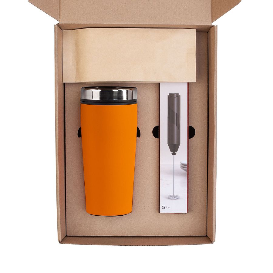- Подарочные наборы с термокружкой оранжевого цвета