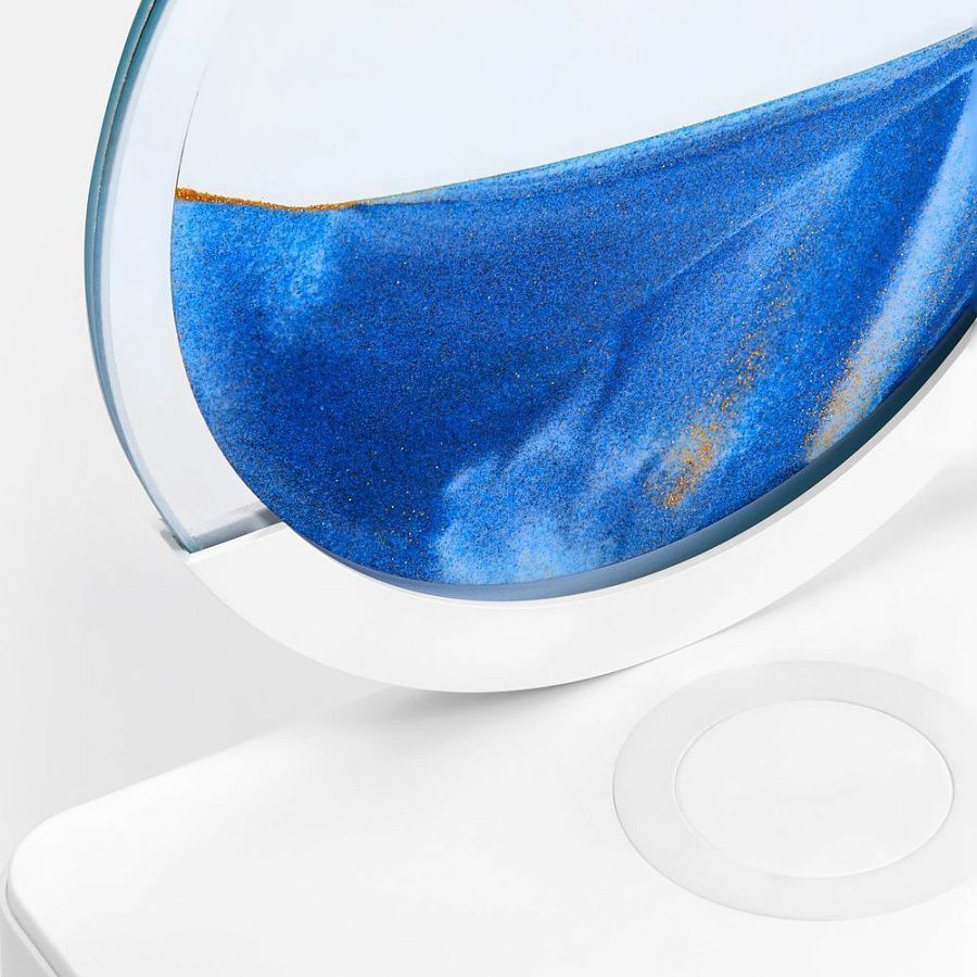 Если перевернуть круглую стеклянную вставку с песком, можно расслабленно понаблюдать за плавным перемещением песчинок в жидкости. Такой полезный для глаз антистресс с легкостью успокоит во время напряженного рабочего дня. Регулируемая подсветка внутри рамки создает еще больший акцент на картине, превращая Sandflow в стильный точечный источник света.