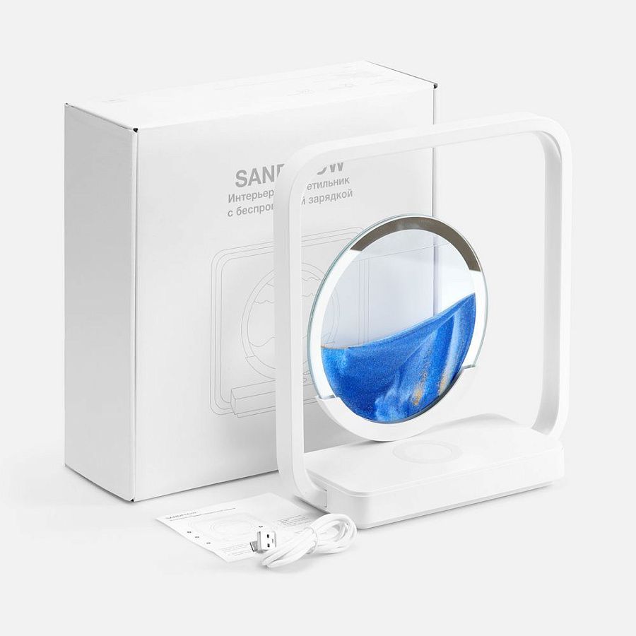 Sandflow — это одновременно и интерьерный светильник, и песочная картина-антистресс, и станция быстрой беспроводной зарядки для телефона.