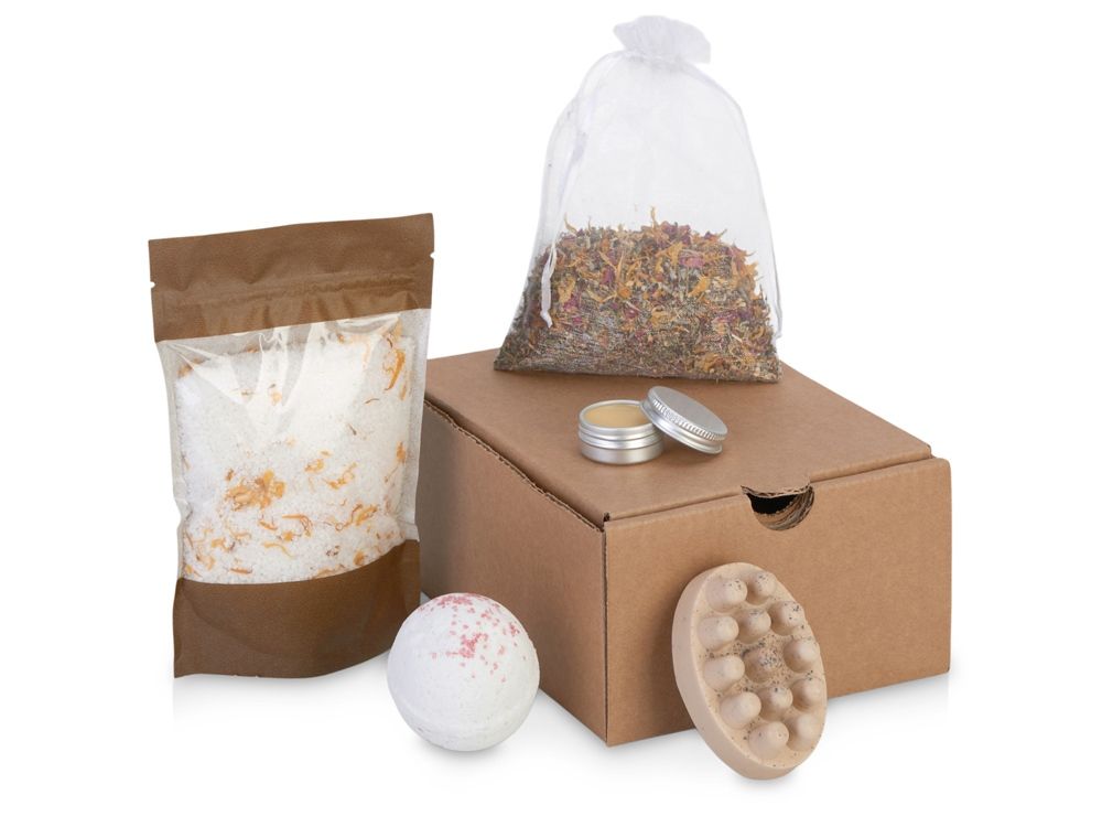 соль для ванны, чайные травы в мешочке, бальзам для губ, массажное мыло с кофе, бомбочка для ванны