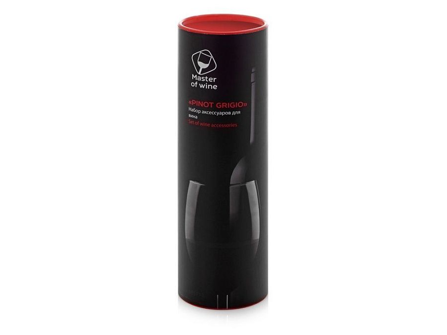 В винном наборе "Pinot Grigio" собрано все, что необходимо для откупоривания, подачи и длительного хранения вина. Аксессуары поставляются в эффектном красном тубусе и брендированном шубере.