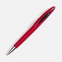 Шариковая ручка приятных округлых форм с цветным глянцевым корпусом и черным акцентом.