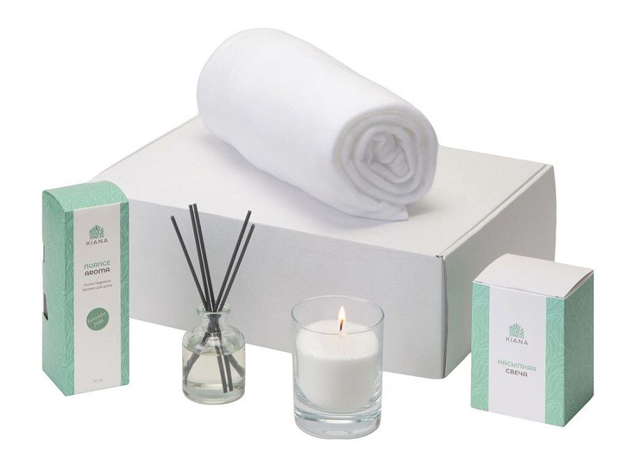 Набор состоит из флисового пледа, диффузора Kiana и насыпной свечи, которые вместе создадут настоящую магию, превратив обычный вечер в время релакса, отдыха и заботы о себе.