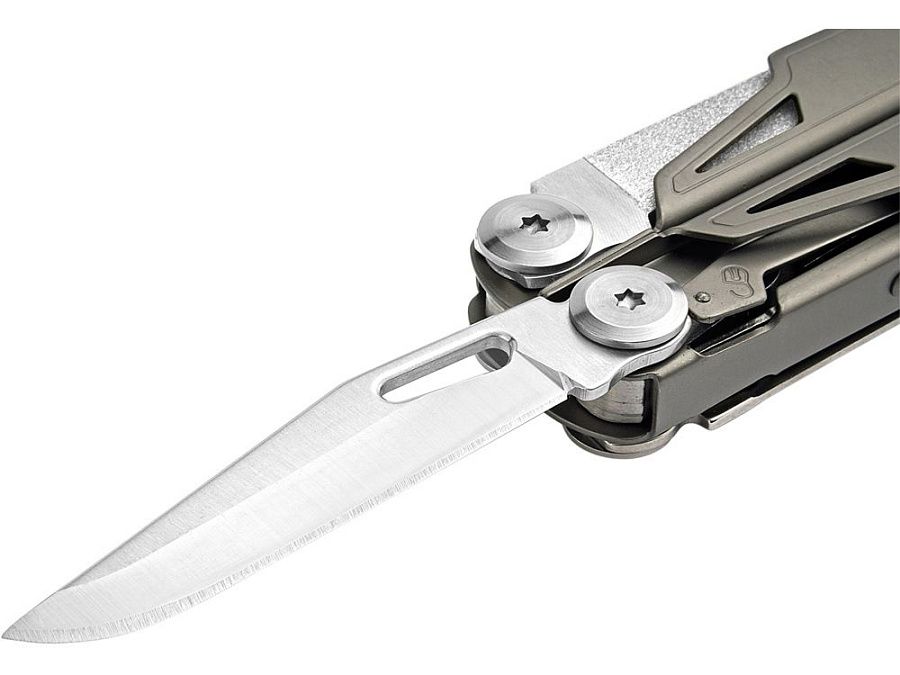 Многофункциональные плоскогубцы: Этот многофункциональный инструмент EDC оснащен инструментами с титановой ручкой, которые доступны в сложенном положении, включая зазубренный веревочный нож, карманный нож, пилу, напильники по дереву и металлу, а также другими функциями, такими как устройство для снятия изоляции, кусачки для жесткой и обычной проволоки, обычные плоскогубцы, плоскогубцы с игольчатым наконечником, обжимные плоскогубцы, открывалки для банок и бутылок, линейки для разметки, пружинящие ножницы, шлицевая и крестообразная отвертки, большая шлицевая отвертка, отвертка для очков.