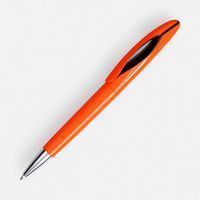 Шариковая ручка приятных округлых форм с цветным глянцевым корпусом и черным акцентом.