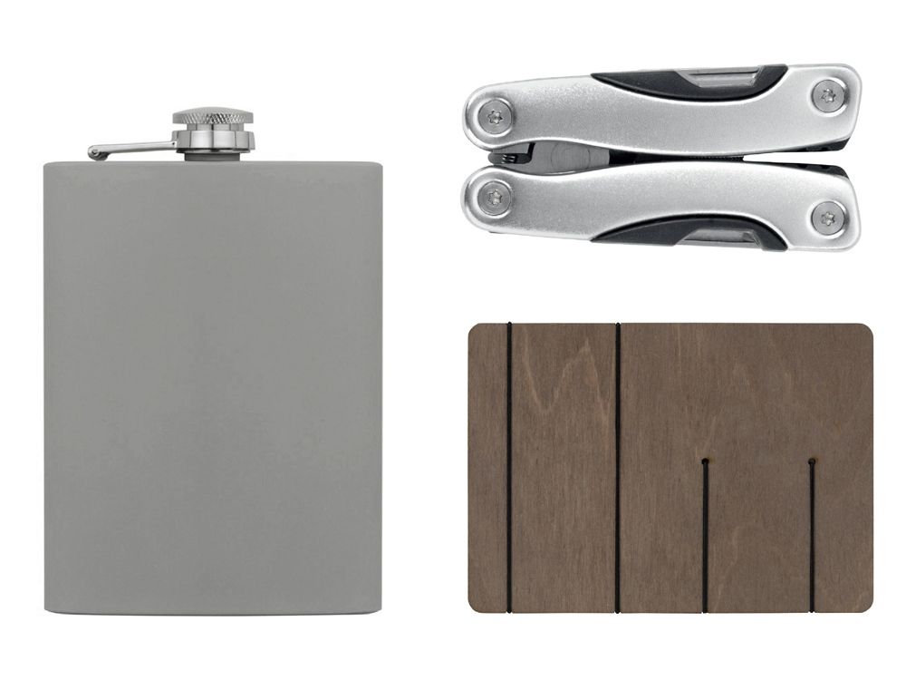 В набор входят мультиинструмент и фляжка, которые пригодятся как в городе, так и на природе.