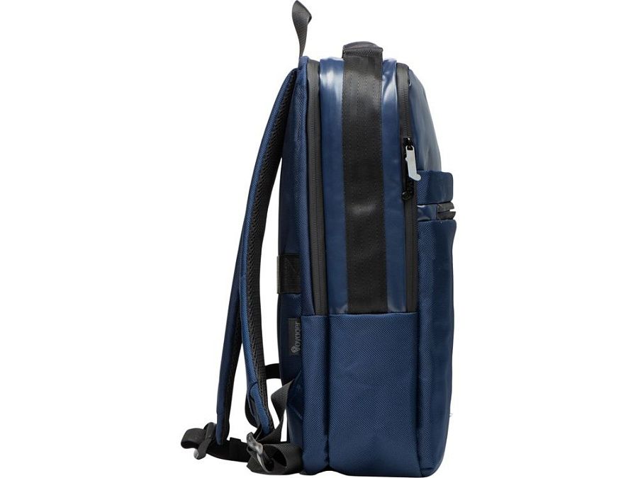 Удобный бизнес-рюкзак для передвижения по городу и деловых поездок состоит из отделения для ноутбука и планшета, большого отделения для одежды с фиксирующими ремнями, 2х наружных карманов на молнии спереди. Конструкция рюкзака продумана до мелочей: внутри большого отделения расположен органайзер для гаджетов и проводов, на спинке есть ремень для крепления на ручку чемодана и регулирующиеся по длине лямки, на лямке - карман для карт или ключей. Водостойкий материал и молнии. В комплекте мешок из спанбонда для хранения и металлический шильд под ваш логотип.