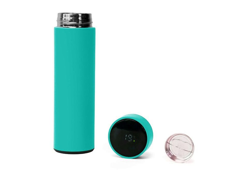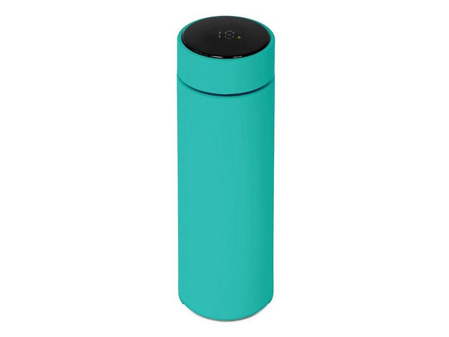 Термос из нержавеющей стали, покрытый цветным soft touch, с крышкой, в которой встроен термометр и LED дисплей, показывающий температуру внутри термоса. Объем: 500 мл. Упаковка: каждый термос в крафт коробке.