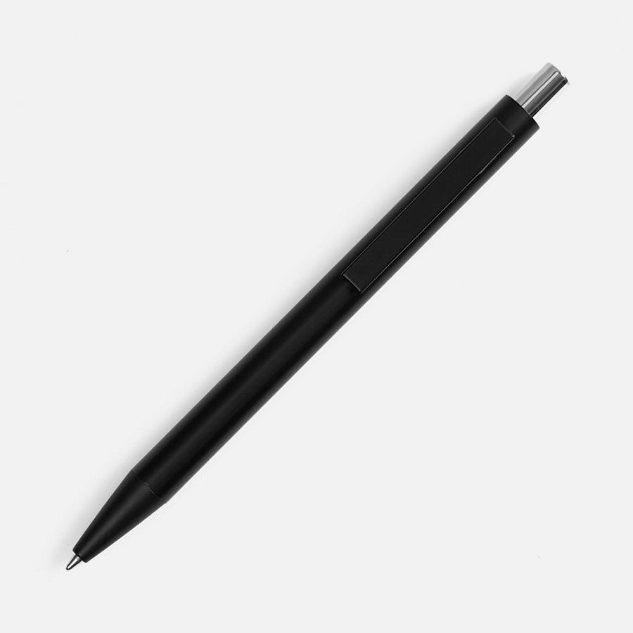 Ручка строгих форм в черном матовом корпусе с цветными деталями, которая точно может удивить, — гравировка на ней вскрывается цветом в тон кнопке.