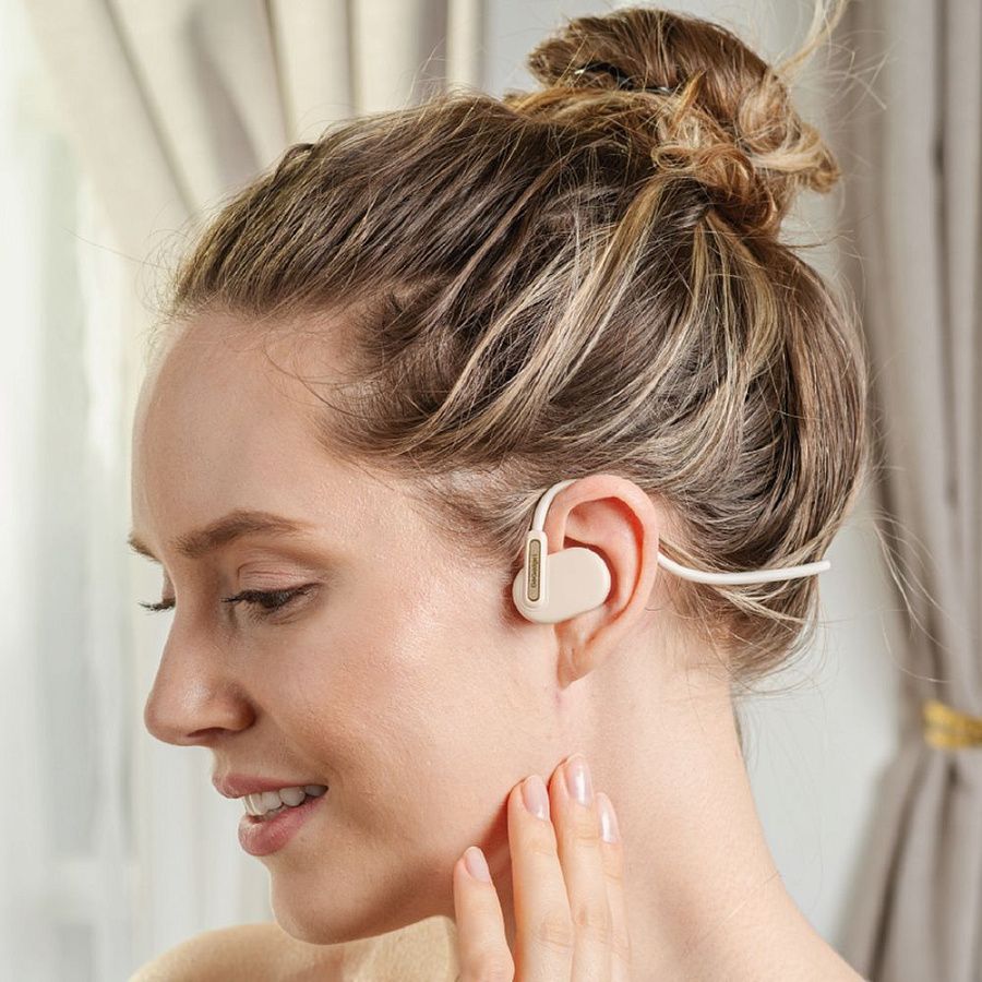 Беспроводные наушники с зашейной дужкой удобно сидят и не выпадают из ушей. Направленные динамики обеспечивают высокое качество звука. Лучше всего подходят для работы в офисе и прослушивания фоновой музыки.
