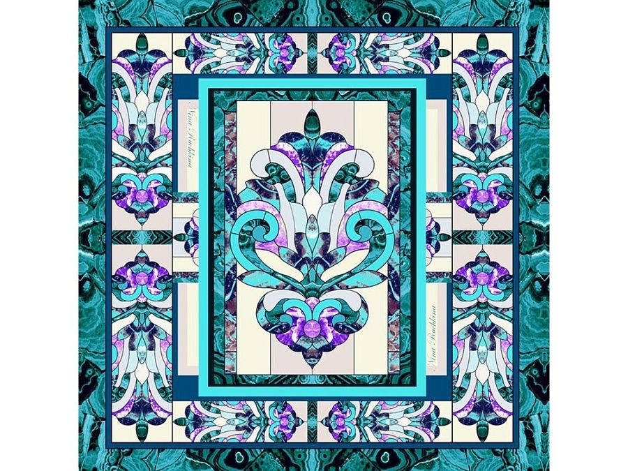 Платок «Кремль – Москва» в шелке воплощает шедевр ювелирного искусства Карла Фаберже из серии подарков для русской императорской семьи. В центре полотна расположен Успенский собор в обрамлении башен Московского Кремля. Утонченный рисунок, яркое цветовое решение и глубокий символизм дизайна платка созданы для эффектного акцента праздничного образа.