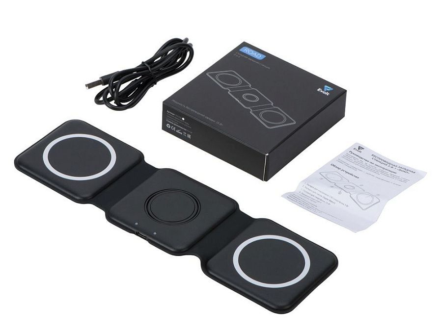 складная станция с беспроводной зарядкой, зарядный кабель usb-type c, руководство пользователя