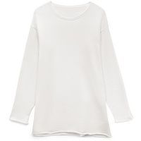 Лонгслив Fuori средней плотности с широким воротом, спущенной линией плеча и свободно подворачивающимися краями по низу, на рукавах и вороте, которые добавляют модели еще большей расслабленности. Прозрачная бирка с логотипом бренда на рукаве не нарушает минималистичности образа.