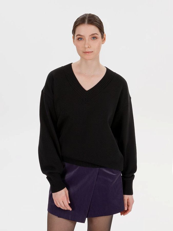 Плотный джемпер Stillan со спущенной линией плеча и глубоким V-образным вырезом — воплощение стиля и яркий акцент всего образа для искушенных и тех, кто не против слегка пересмотреть классику.