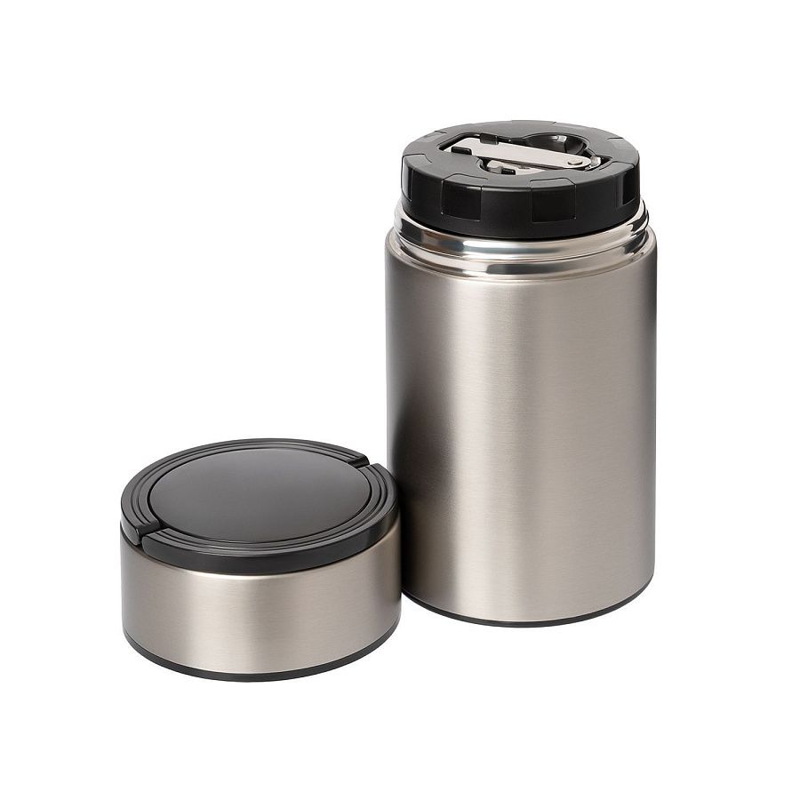 Внутренняя крышка оснащена специальным отсеком, в котором находится складная ложка из высококачественной стали 304 марки. Вакуумная конструкция из нержавеющей стали надежно сохраняет тепло.