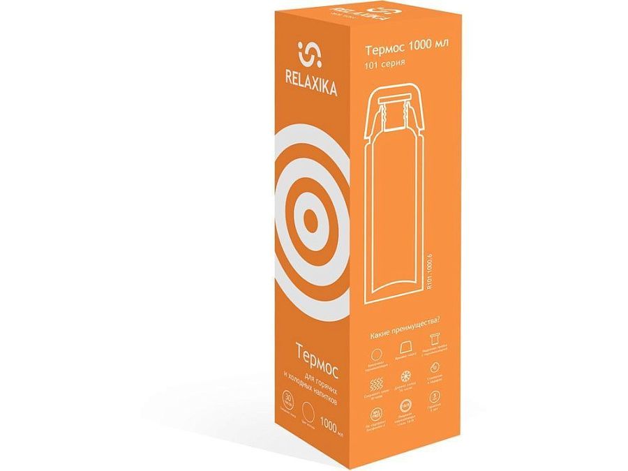 Классический термос Relaxika черного цвета с высокими показателями удержания температуры напитка для походов, путешествий, спорта и ежедневного использования. Прочные двойные стенки из высококачественной нержавеющей стали 18/8 с вакуумной изоляцией гарантируют, что ваш напиток останется холодным в течение 36 часов и горячим до 30 часов. Этот материал не только прочен, но и гигиеничен, не выделяет никаких вредных для здоровья веществ. Ваши напитки сохраняет естественный вкус и не приобретут посторонний запах.
