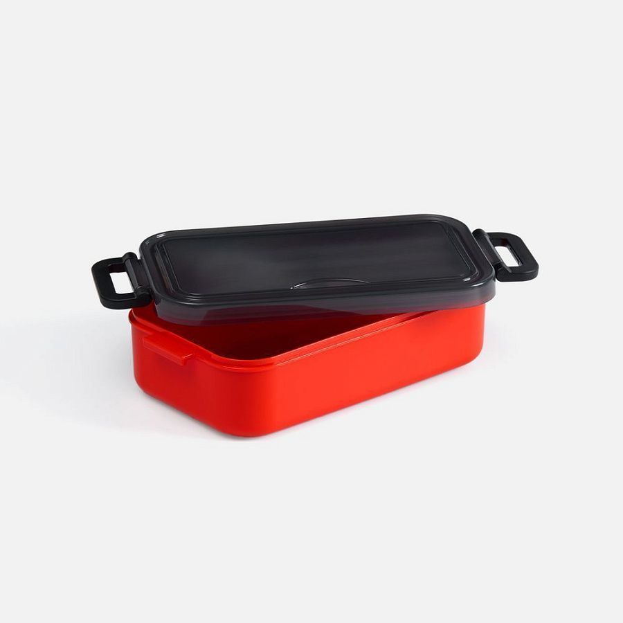 Удобная конструкция с крышкой на защелках обеспечивает надежную фиксацию. Специальное отделение под крышкой позволяет хранить столовые приборы, освобождая дополнительное пространство в сумке.