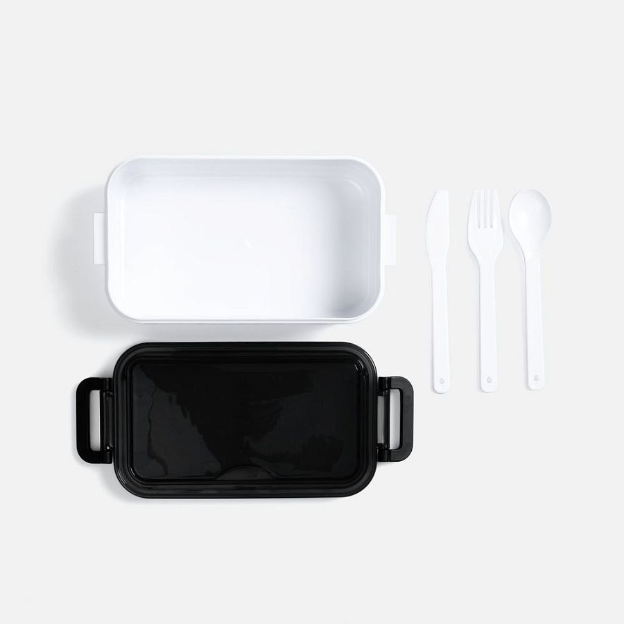 Удобная конструкция с крышкой на защелках обеспечивает надежную фиксацию. Специальное отделение под крышкой позволяет хранить столовые приборы, освобождая дополнительное пространство в сумке.