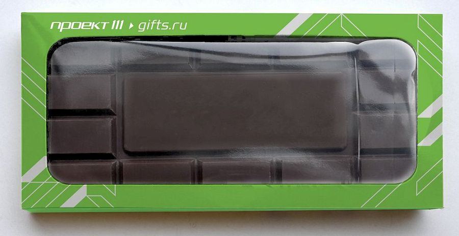 Барельефный шоколад с логотипом в индивидуальной упаковке с окошком.