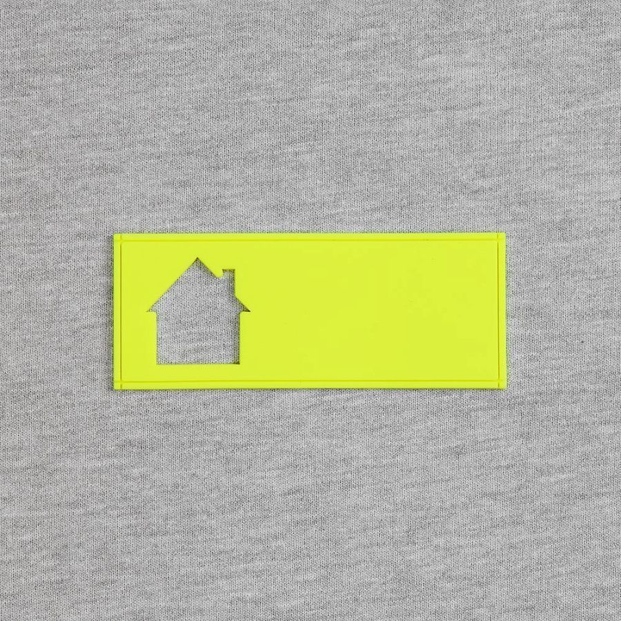 - сделать нанесение на изделии, поверх которого нашить лейбл так, чтобы вырубка стала частью целостного уникального дизайна.