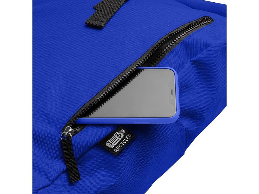 Рюкзак из полиэстера RPET. Основное вместительное отделение с широким отверстием. Внешний карман на молнии и два боковых кармана. Мягкие сетчатые плечевые ремни и спинка.