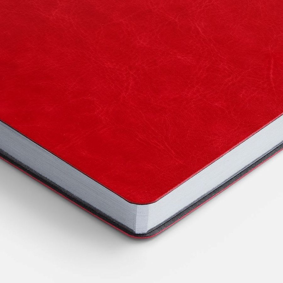 Ежедневник с гибкой обложкой, выполнен из материала Nebraska, красный PP, дополнен ляссе красного цвета.