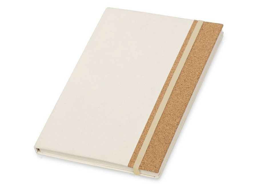 Внешняя обложка блокнота изготовлена из переработанных молочных пакетов (тетра-паков) с вставкой из пробки, а внутренняя крафтовая обложка дополнена линейкой.