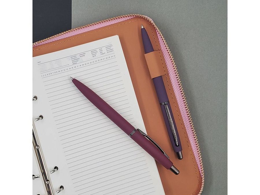 В ручке нет ничего лишнего, но она привлекает к себе внимание: изящна благодаря плавным линиям, эргономичному корпусу и приятна на ощупь, благодаря покрытию soft-touch. Контраст добавляют кольцо и клип из серебристого металла. Отличный бизнес-сувенир!