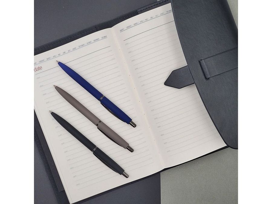 В ручке нет ничего лишнего, но она привлекает к себе внимание: изящна благодаря плавным линиям, эргономичному корпусу и приятна на ощупь, благодаря покрытию soft-touch. Контраст добавляют кольцо и клип из серебристого металла. Отличный бизнес-сувенир!