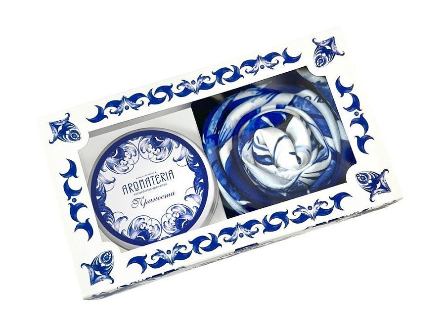 15 х 8,5 х 8,5 см, платок 90 х 90 см, свеча d6,5 х 5