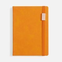 Ежедневник с твердой обложкой, выполнен из материала Nubuck Touch, оранжевый OO, дополнен ляссе в цвет обложки.
