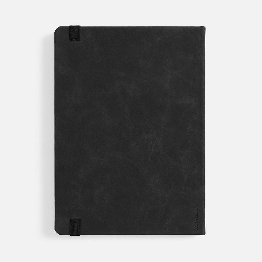 Ежедневник с твердой обложкой, выполнен из материала Nubuck Touch, черный AA, дополнен ляссе в цвет обложки.
