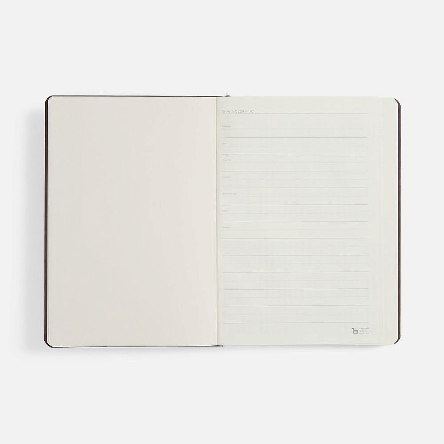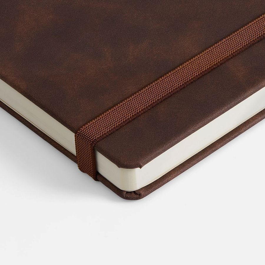 Ежедневник с твердой обложкой, выполнен из материала Nubuck Touch, темно-коричневый ZZ, дополнен ляссе темно-коричневого цвета.