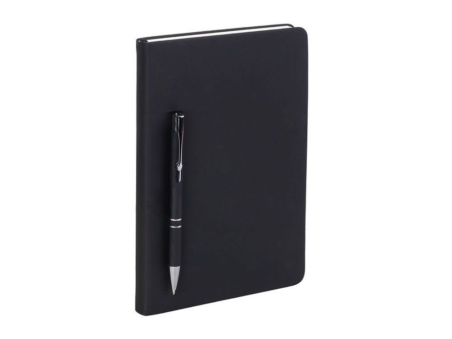 Бизнес-блокнот в твёрдой обложке имеет ляссе в тон обложки и среза. Бумажный блок разлинован в линейку и выполнен из бумаги, полученной из древесины из специальных восполняемых лесных ресурсов, имеет сертификат FSC.