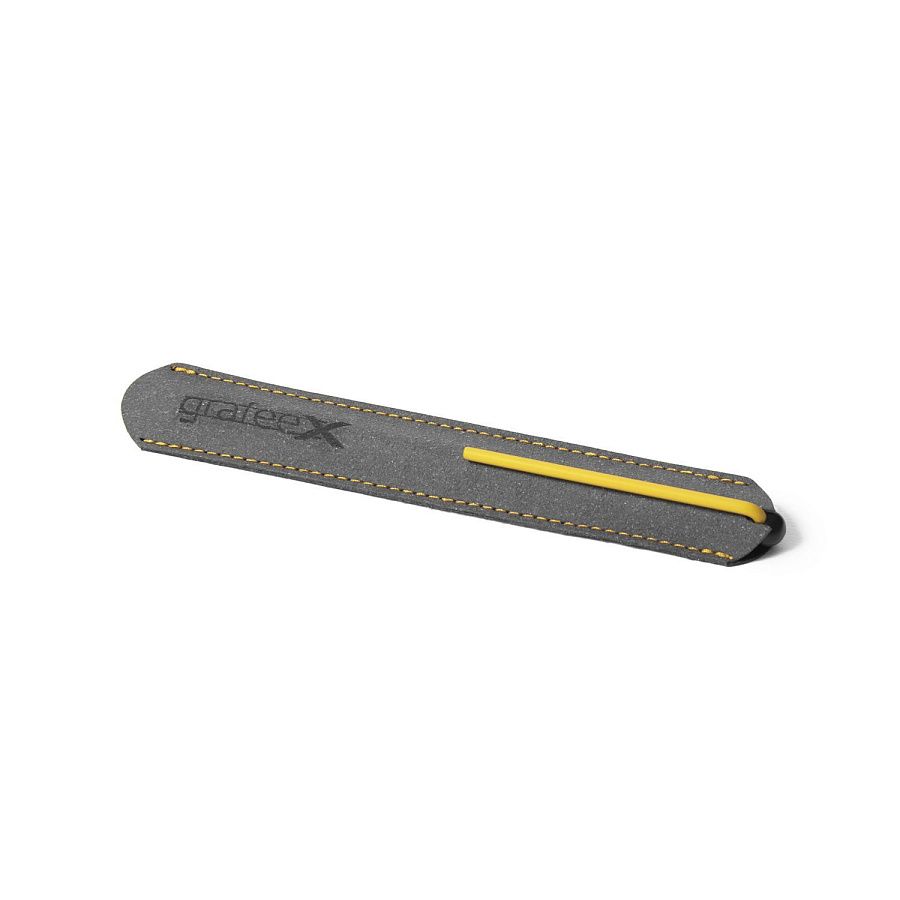 Инновационный, совершенно необычный карандаш с цельным алюминиевым матовым корпусом черного цвета, ярко-желтым клипом и пишущим наконечником из материала GrafeeX. GrafeeX - это запатентованный инновационный материал, полученный в результате спекания мелких частиц графита при высоких температурах. То есть он пишет, как обычный графитовый карандаш, но из-за высокой плотности материала крайне экономно расходуется, и его хватает очень надолго. Карандаш вкладывается в элегантный темно-серый чехол с контрастной прострочкой в цвет клипа, сшитый вручную из рециклированной кожи. GrafeeX станет идеальным помощником в повседневной жизни: для заметок, для набросков или просто для записи идей на бумаге.