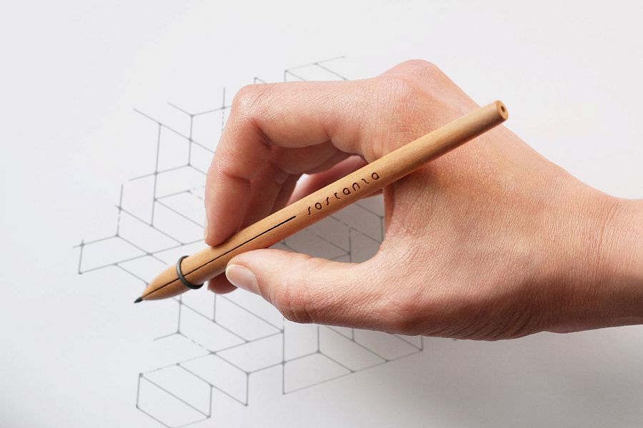 Карандаш – это артефакт передающий тепло и напоминающий нам о детстве, единственный недостаток которого - короткая жизнь, ведь он уменьшается с каждым использованием. Механический карандаш, наоборот, предмет долгого использования, но состоящий из частей, имеющих способность теряться и ломаться. Пишущий инструмент SOSTANZA интерпретирует двойную функциональность через эстетику и сочетание простоты формы и драгоценных пород дерева. Он состоит из двух частей: корпуса из дерева вишни и стального кольца, которое помогает закрепить грифель и подчеркивает цвет и форму корпуса. Каждый карандаш изготовлен вручную. Обладатель премии Platinum A' Design Award. Грифель сменный, это стандартный грифель диаметром 2 мм для цанговых карандашей. Карандаш упакован в стеклянную пробирку, закрытую пробкой. Пробирка защищена треугольной картонной упаковкой белого цвета.