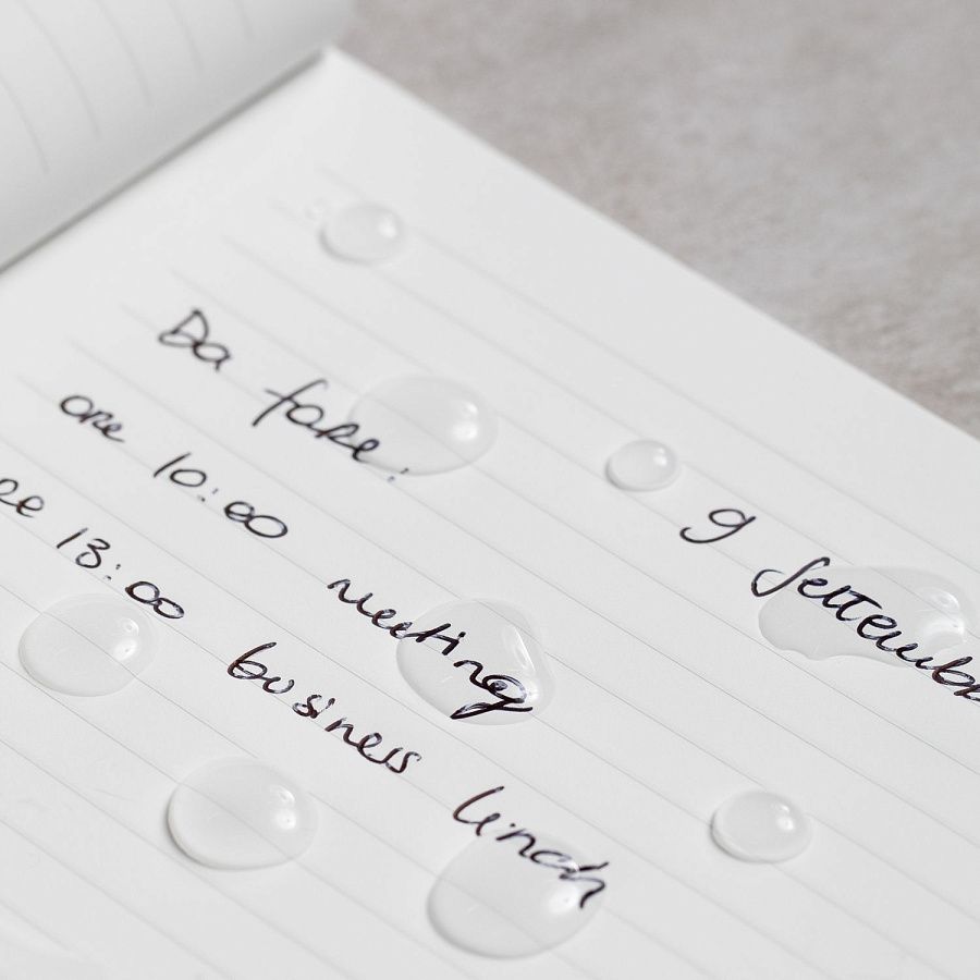 Тетрадь с листами из каменной бумаги. Дизайнеры Pininfarina создали элегантный минималистский дизайн для своего идеального дополнения к линейке вечных ручек Pininfarina Segno, так как именно на каменной бумаге они оставляют очень яркий след. Черная твердая обложка с покрытием soft-touch фиксируется резинкой того же цвета. Тетрадь размером А5 (14х21 см) содержит 64 листа без линовки. Листы сделаны из каменной бумаги, экологической альтернативы обычной целлюлозной бумаге, которая не требует вырубки деревьев, использования воды и агрессивных химических веществ, тем самым защищая окружающую среду. Она состоит из 80% камня (карбоната кальция) и на 20% из связующего его нетоксичного полиэтилена высокой плотности (HDPE). Это бумага нового поколения с уникальными характеристиками. Каменная бумага на 100% водоотталкивающая, ее можно мыть. Жидкости, включая масло, не изменяют ее структуру, поскольку она не содержит древесных волокон, которые поглощают жидкости, в следствие чего традиционная бумага покрывается пятнами, деформируется и разрушается. Каменная бумага устойчива к разрыву, что также способствует ее долговечности. Она имеет приятный бархатистый эффект и не отражает свет. Плотность бумаги 140 гр/м2. Сделана в Италии.